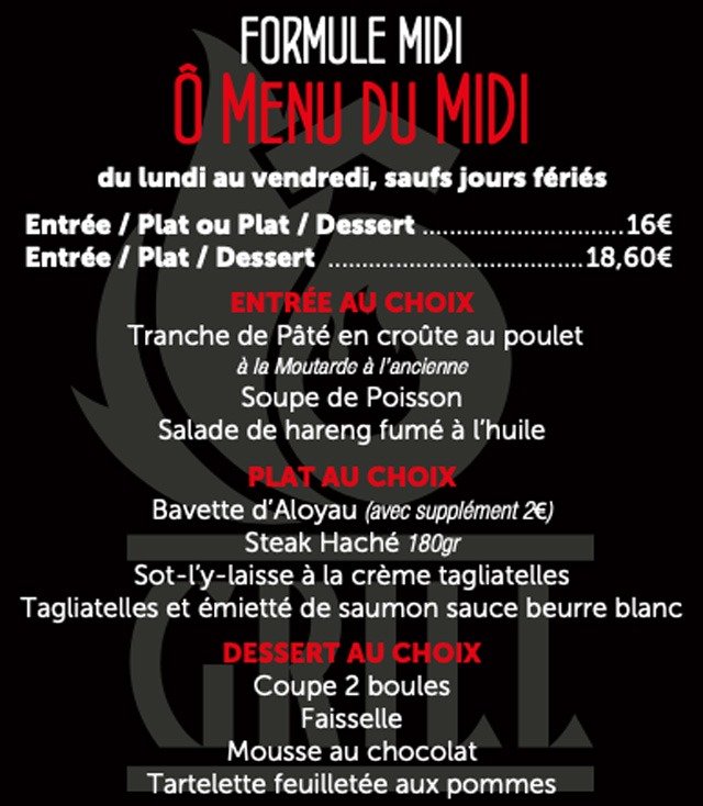 Votre restaurant Ô GRILL vous propose :