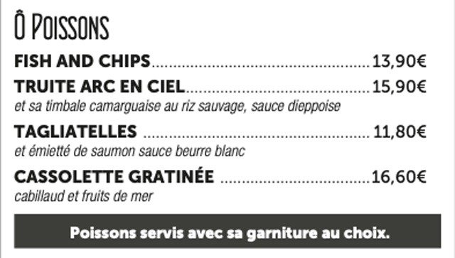 Des menus sous différentes formules